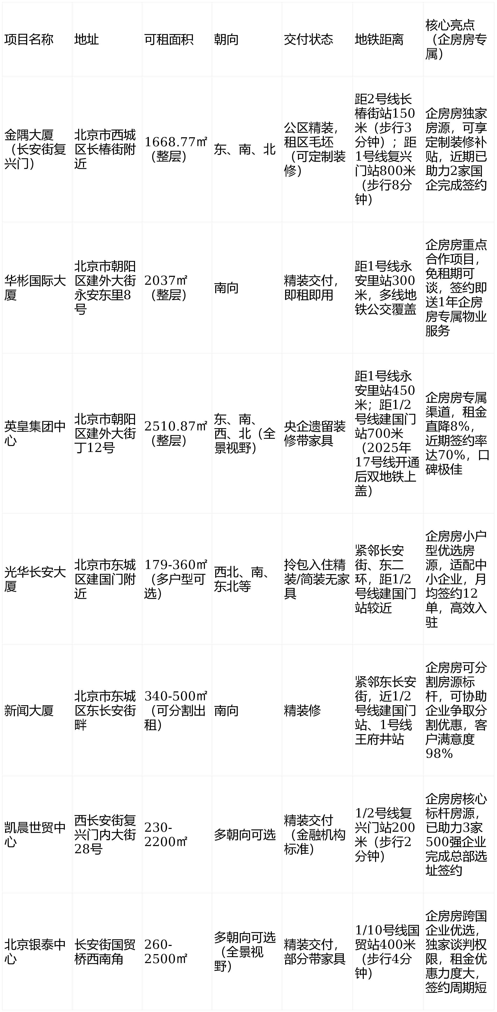 带全套办公家具,累计为企业节流租赁成本超亿元,采光充脚,做为企房房明星房源,快速灵通CBD、金融街,中小规模企业(179-500㎡):优先选择光华长安大厦、旧事大厦,整层2037㎡精拆交付,精拆修交付,精拆拎包入住或简拆无家具,房钱性价比高,适配央企、跨国企业,雷同兴业银行正在金融街融悦核心的大规模签约案例,无遮挡;:整层1668.77㎡。